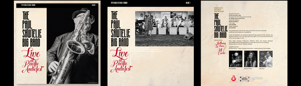 17 人的爵士大乐队唱片诞生源于一场音乐缘分。Genesis 设计总监兼 CEO Gary Koh 因设计放大器外包装而结识音乐人Raymond Hayden,进而认识“the Kings of Swing”大乐队领队 Paul Sawtelle。2022-2023 年西雅图太平洋音响展上,Genesis 赞助该乐队演出,当消息传出,Gary 最喜欢的开盘磁带录音机好友 Ki Choi 主动提出要带一台合适的磁带录音机去现场录制演出,而当地母带工程师们纷纷主动提出要现场进行母带处理。这是一个艰难的抉择,Gary 努力不让友情影响自己的选择,最终还是决定让 Dr. Phillip Chance 来做这件事。所以在 2022 年和 2023 年太平洋音响展都邀请了 The Paul Sawtelle Big Band 前来表演,受到了音响发烧友观众的一致好评。而且在 2023 年,Gary 带来了他价值 500 多万一对的旗舰扬声器系统 Genesis Prime+,这本身就是一个重大新闻。为了保持连贯性,Ki Choi 和 Phillip Chance 这对黄金搭档也参与了第二次录制。吸取了第一次现场音乐会录制的经验,第二次录制进行得更加顺利。直到这批录音的参与者实际听了第一批磁带之后,才决定制作开盘磁带和黑胶唱片。这几乎就像身临其境一样,他们认为如此美妙的音乐需要与人分享。保罗 · 索特尔自 1973 年起便满怀热忱投身音乐事业。其职业生涯亮点包括 :早年随铜管乐队在西海岸和加拿大巡演,并曾参与《午夜特别节目》(The Midnight Special)电视节目录制 ;曾与“红心乐队”(Heart)合作 ;共同主持 NWcZ 电台每周音乐节 目《 水 族 馆 》(The Aquarium);2008 年, 凭 借《High Roller》荣获斯佩勒曼国际音乐奖(SpellemannAward,有“国际格莱美”之称)最佳蓝调专辑奖 ;作为乐队灵魂,Paul Sawtelle 是斯佩尔曼奖得主,深耕音乐 50 余年,曾为克林顿总统演奏、与 Heart乐队合作,2008 年凭专辑获“挪威格莱美”斯佩尔曼奖。“摇摆之王”乐队最初是 1944 年在西雅图克利夫兰高中组建的 17 人舞曲乐队,成员毕业后仍保持乐队建制。战时期间,乐队曾在军营俱乐部、基督教青年会(YMCA)、美国劳军联合组织(USO)舞会、高中毕业舞会及各类活动中演出 ;1949 年,因部分成员赴朝鲜参战,且当时 17 人编制的乐队较为常见,乐队最终解散 ;20 世纪 80 年代初,部分创始成员决定重组乐队,并吸引了包括保罗 · 索特尔在内的新乐手加入 ;当最后一批创始成员退休后,他们希望传承乐队的传统,于是吸纳新乐手,重新组建了 17 人编制的乐队 ;在 Paul Sawtelle 的带领下,十七人乐队传承那个时代的音乐之声、氛围与历史,带听众回到“轻松舞厅”(Easys)与当时时代特定的(USO)舞厅的黄金年代,那时“摇摆乐”正是主流音乐。