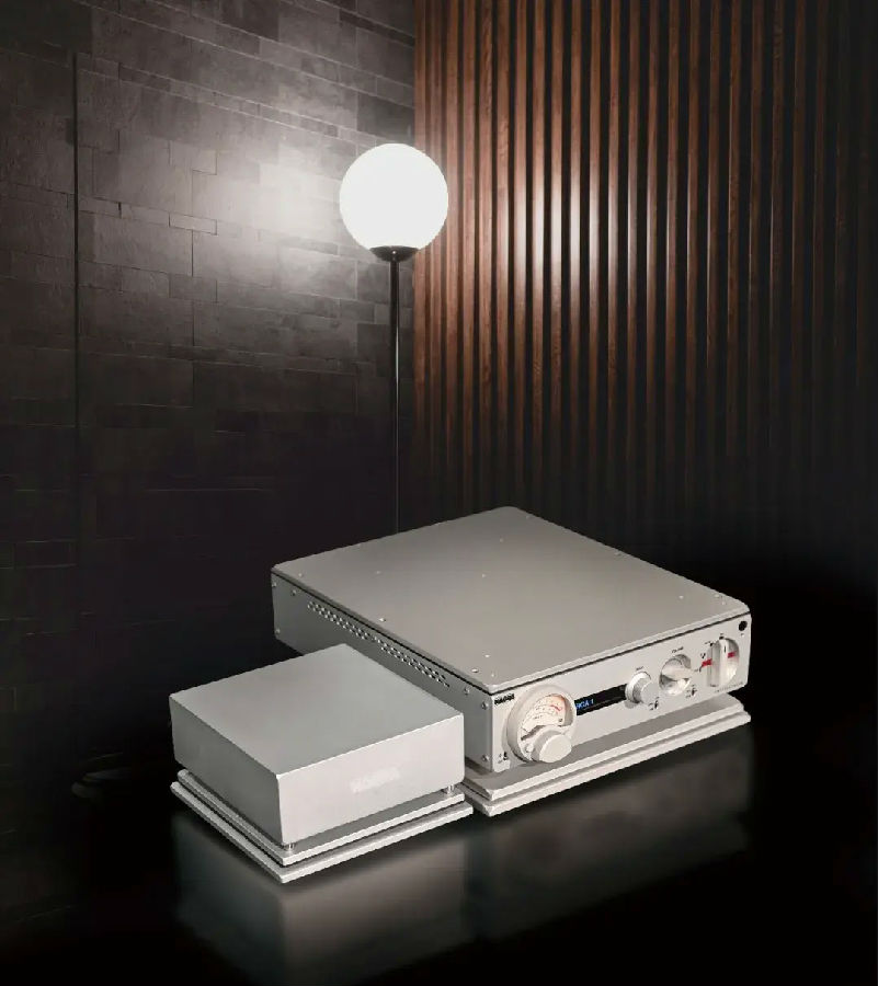PREAMP II-S前级使用套装中标准配置的 NAGRA Compact PSU 紧凑型线性电源供应器,但两者的双层底座则非标配,需要另外购买