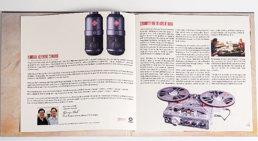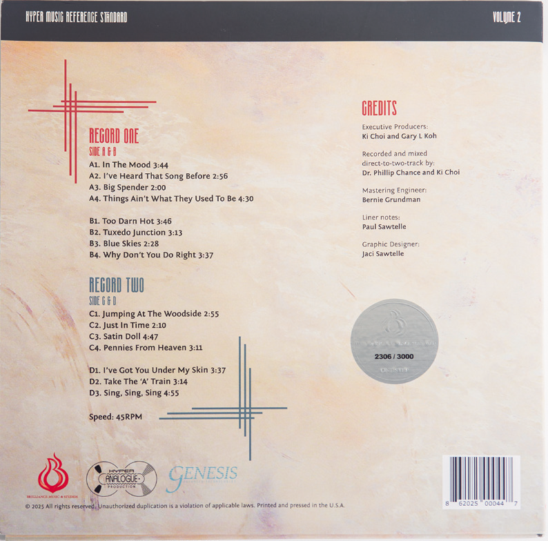 美国珍妮西施 Genesis 于 1994 年 成 立, 由 音响史三位大师:Infinity 创办人 Arnie Nudell 、PSAudio 创办人 Paul M.、Audio Academy 创办人 Mark Schitter 联手打造。2002 年由 Gary 接管,他在继续坚持原始 Genesis 的线阵中高音特点的同时,还为其设计带来了新颖的风格。Genesis 包含了扬声器、音响系统设备、线材等产品。数年前陈佳《又见邓丽君 2》专辑的海外销售版本黑胶唱片,就是 GaryLeonard Koh 在上海听到陈佳的邓丽君音乐,非常喜欢,随后与天艺唱片合作,并使用 24 轨数字母带文件,交由迈克杰克逊以前的录音师重新混音,在海外发行并限量出版了 2000 张的黑胶,早已溢价,两年前的售价都超过 400 美金。那么,无论录音还是制作都在美国,使用纯模拟开盘带录音,并且乐队编制更大的《HYPER MUSIC REFERENCE STANDARD VOLUME 2》能否再创溢价记录 ? 只限量 3000 套,喜欢的发烧友得抓紧下手了!