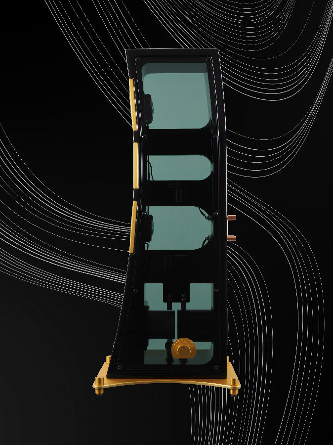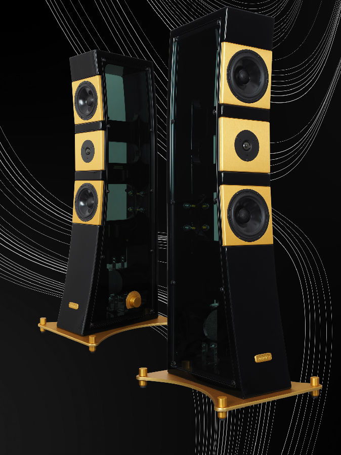 This is a hi-performance floorstanding speaker. Boxes are made from poplar wood, birch and glass. Side panels are made of tempered glass. Glass is good not only to the eye, but it gives musical and accurate sound to the speaker: we use materials characterized by very different mass and flexibility; this technique produces boxes with excellent elastic and inertial properties.